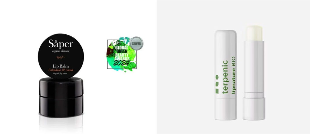 2 bálsamos labiales certificados BioVidaSana, de Saper y de Terpenic.
